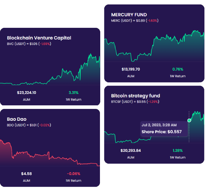 Start your decentralized hedge fund in shortest terms, build your own mutual funds based on smart contracts and distribute with us!